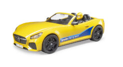 Závodní vůz Bruder Roadster je vybaven novým systémem výměny kol. Přiložen je velký obtiskový aršík s mnoha možnostmi pro mladé závodní jezdce, jak si individuálně navrhnout svůj závodní vůz.