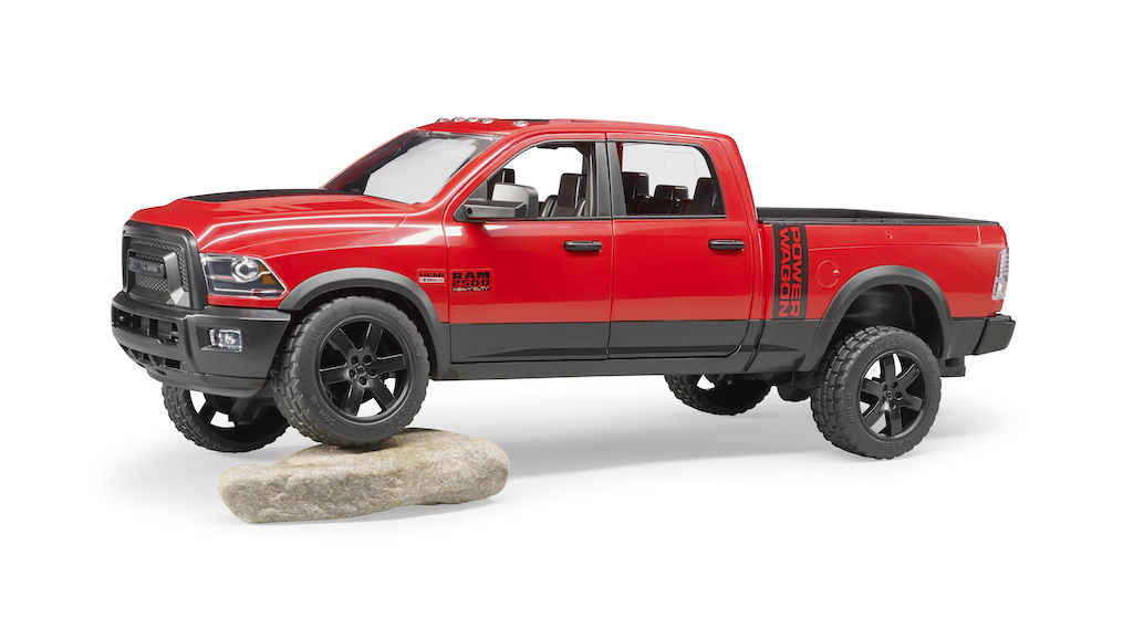 Motor V8 HEMI produkuje 410 BHP a generuje točivý moment 582 Newtonmetrů. Tento výkonný vůz s nápadným designem Power Wagon má stejně jako skutečná předloha kabinu pro posádku se čtyřmi dveřmi. Všechny dveře se otevírají a vejdou se do nich čtyři postavy bworld. Tento model v měřítku 1:16 je vybaven odpružením obou náprav, které poskytuje jízdní komfort a schopnosti v terénu. Přední nápravu lze řídit pomocí přiloženého prodloužení volantu. Výklopná záď se otevírá pro přepravu nákladů a ložná plocha poskytuje prostor pro palety, paletové klece nebo balíky slámy BRUDER (příslušenství 02415/02342, není součástí dodávky). Volitelně dostupný světelný a zvukový modul (příslušenství 02802) lze nainstalovat po otevření střešního okna pro ještě větší zábavu.