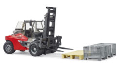 Vysokozdvižný vozík nesmí chybět v žádném skladu nebo depu přepravců. Vozík má spoustu funkčních prvků, např. výškově nastavitelné teleskopické rameno se sklopnou vidlicí s možností zvětšit nebo zmenšit rozteč vidlice, pro snadné přemístění palet či beden s nákladem. Zadní nápravu lze řídit otáčením knoflíku na zadní straně vysokozdvižného vozíku. Součástí příslušenství je velká paleta a 3 boxy.